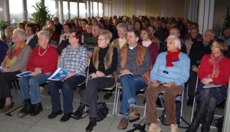 Die Veranstaltung richtete sich an betroffene und interessierte Zuhörer, die sich über die Möglichkeit der Vorbeugung, der aktuellen Untersuchungs- und Behandlungsmöglichkeiten informieren wollten. In dem Vortrag über den Knochenstoffwechsel und die Osteoporose wurden bereits Antworten zu häufig vorkommenden Fragen gegeben. Außerdem wurden den Interessierten Risikofragebögen zur Osteoporose vorgestellt. Von besonderem Interesse waren die exemplarischen Tests des Sturzrisikos die auch besprochen wurden. In einem kurzen Filmbeitrag wurden Therapiebausteine und insbesondere das Bewegungsprogramm "Die 5 Esslinger" mit ihren definierten Fitnesskomponenten demonstriert. Auch neumoderne Therapiemöglichkeiten, wie die hocheffektiven Vibrationstherapien, konnten vor Ort ausprobiert werden. Informationen rund um die Osteoporose lagen in Form von Flyern und Broschüren, auch im Hinblick auf Informationen zur Ernährung bereit. Die gesamte Veranstaltung war somit als interaktives Informations- und Gesprächsforum angelegt und wurde gut angenommen.